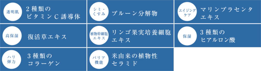 さらなる美しさを追求するため、数ある美容成分から美肌効果が高い成分にのみ着目。選び抜いた高機能成分を贅沢に配合し、美肌を次のステージへ